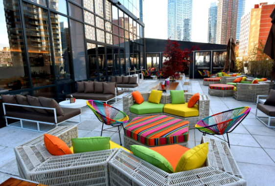 Также каждое лето в Нью-Йорке традиционно проводят показы фильмов на крышах небоскребов. К примеру, такую возможность предоставляет отель «Yotel». Сюда могут прийти как туристы, так и местные жители, чтобы посмотреть кино. Киносеансы проходят по четвергам в уютной домашней обстановке. На крыше этого отеля есть много мягких кресел и подушек со столиками. При желании здесь можно заказать еду и напитки, а еще посетить бар поблизости. Вокруг всегда светло, красиво, тихо — идеальное место для вечернего просмотра кино.