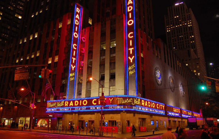 - М’юзік-хол «Радіо-сіті» — один із найпопулярніших театрів у світі. Тут відбуваються не лише театральні постановки, а ще й музичні церемонії, наприклад, «Греммі», «MTV Video Music Awards». Будівлю «Радіо-сіті» легко впізнати навіть уночі завдяки неоновій вивісці. Тут у будь-який час збирається багато людей, щоб побачити розважальні шоу та насолодитися культурним відпочинком у Нью-Йорку.